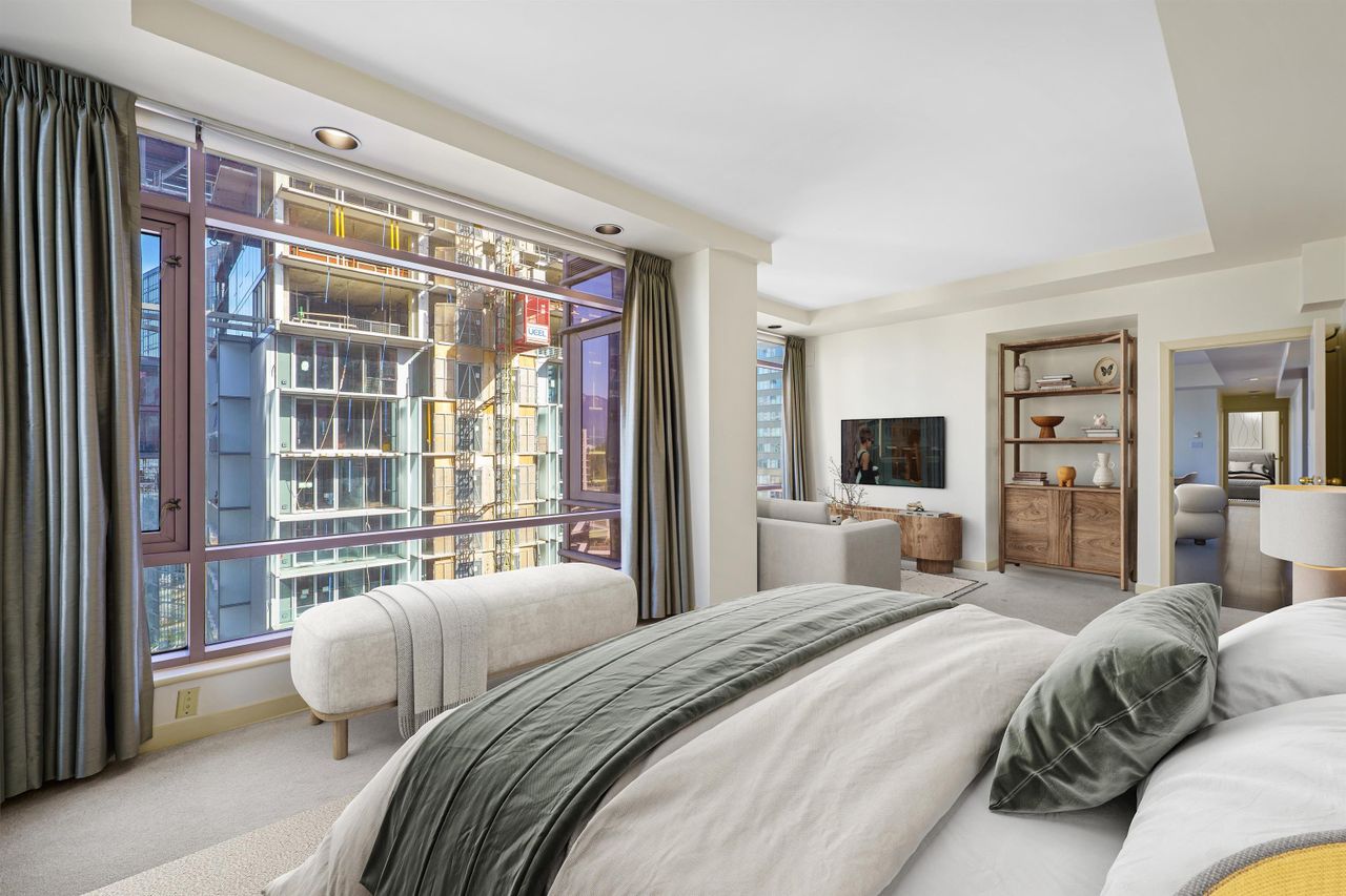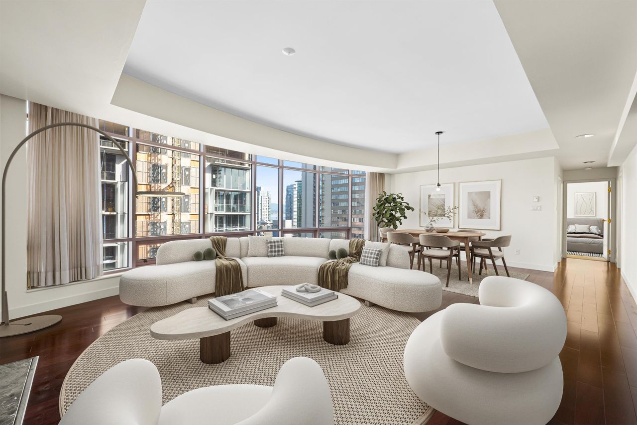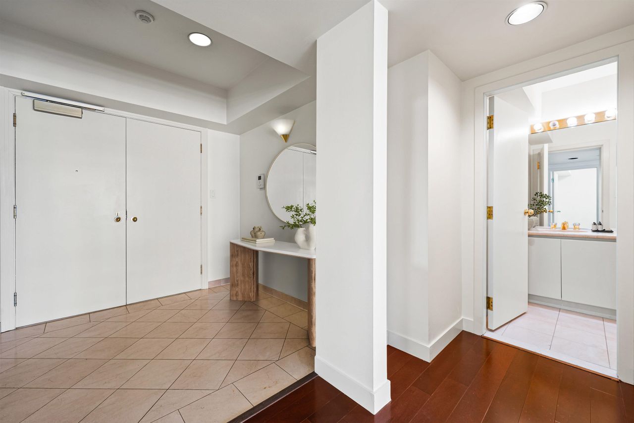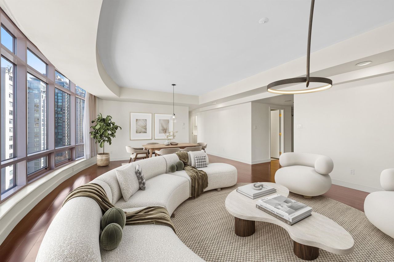Perched just steps from the spectacular Coal Harbour waterfront and world-famous Stanley Park, this exceptional residence offers a rare combination of space, prestige, and location. Spanning over 1,820 sq. ft., the expansive floor plan features 2 generous bedrooms, a flex room and 2.5 bathrooms—delivering the comfort and scale of a detached home in the heart of the city. Includes a BONUS of 3 parking stalls and a storage locker! Designed by internationally acclaimed architect James K. M. Cheng, the home showcases timeless architecture and inspiring West Coast views. Maintained in original condition, this is a remarkable opportunity to bring your own design vision and create a truly bespoke luxury residence in one of Vancouver’s most coveted waterfront communities.